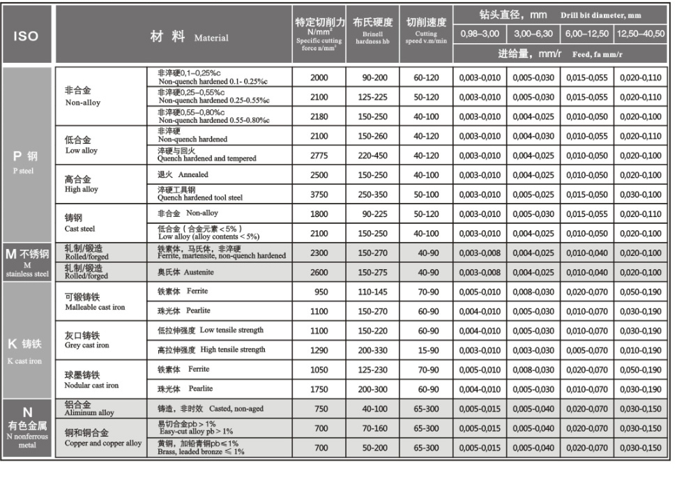 槍鉆機(jī)床的切削參數(shù) 槍鉆機(jī)床的冷卻液壓力和流量表 BTA深孔鉆床切削參數(shù) BTA深孔鉆床的冷卻液壓力和流量表 GSM單刃槍鉆標(biāo)準(zhǔn)磨削角度 QYZ深孔鉆系統(tǒng)切削參數(shù)表