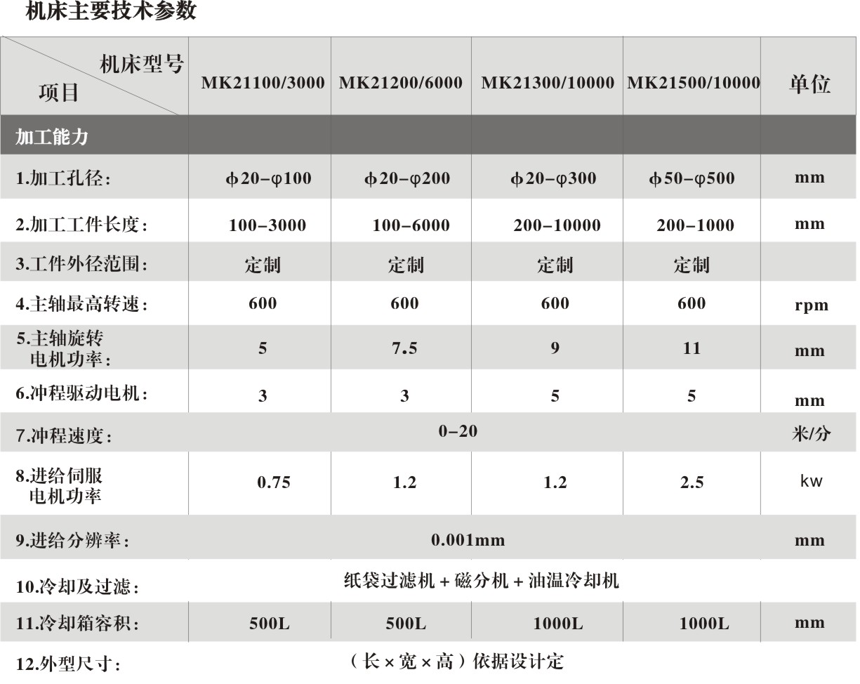簡要說明:MK21系列數(shù)控臥式深孔珩磨機(jī)床,是我公司專門為煤機(jī)、石油機(jī)械、液壓機(jī)械行業(yè)深孔加工設(shè)計(jì)制造的專用臥式珩磨機(jī)。主機(jī)床身采用HT300精密鑄造,珩磨頭伺服定量漲緊。磨削孔徑更精確,加工效率更高。機(jī)床具有剛性好,珩磨效率高,珩磨精度高,工件裝夾便利等優(yōu)點(diǎn)。
