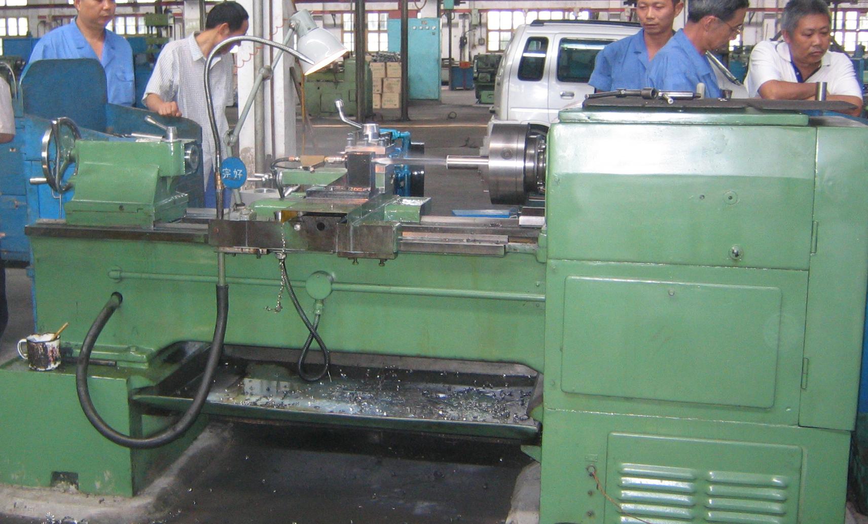 開啟機床,待機床主軸旋轉(zhuǎn)穩(wěn)定后,打開自動走刀進入切削狀態(tài),鐵屑連續(xù)飛出。