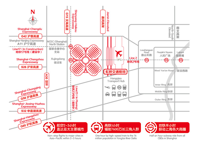 1. 軌道交通:2號線徐涇東站4/5/6號出口。